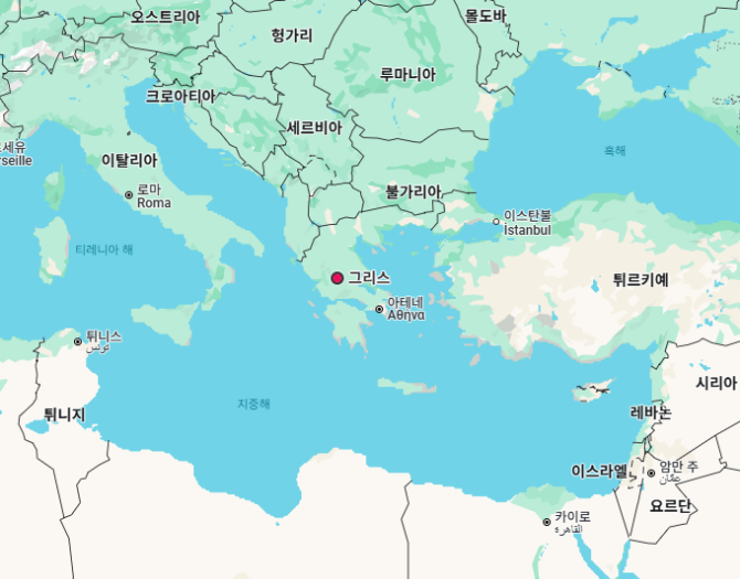 그리스'Greece'는 유럽남동부 발칸 반도의 최남단에 위치하고 있으며, 수도는 아테네'Athens'입니다.