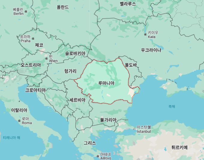 루마니아'Romainia'는 유럽 남동부에 위치한 나라로, 수도는 부쿠레슈티"Bucharest"입니다.
