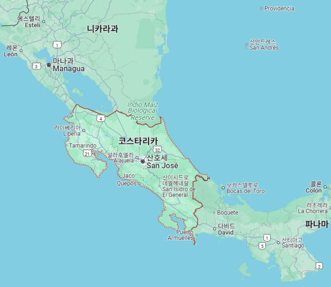 지금부터 코스타리카 위치 지도와 국기와 국장 등의 간단한 정보를 살펴보겠습니다.