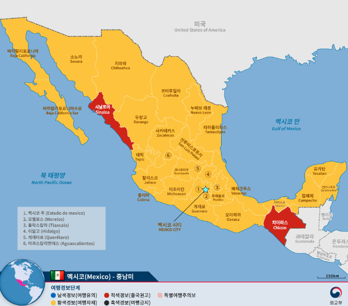 멕시코'Mexico'는 북아메리카 남부, 미국 남부에 국경을 맞이하는 국가로, 수도는 멕시코시티'Mexico City'입니다.
