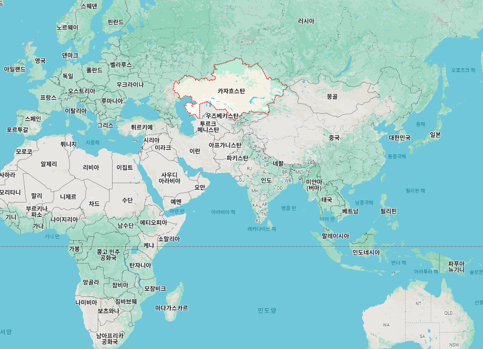 카자흐스탄 위치 지도