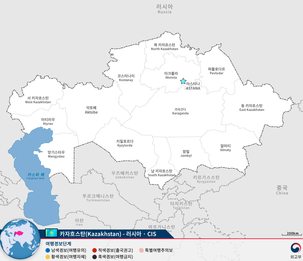 카자흐스탄 여행경보지도