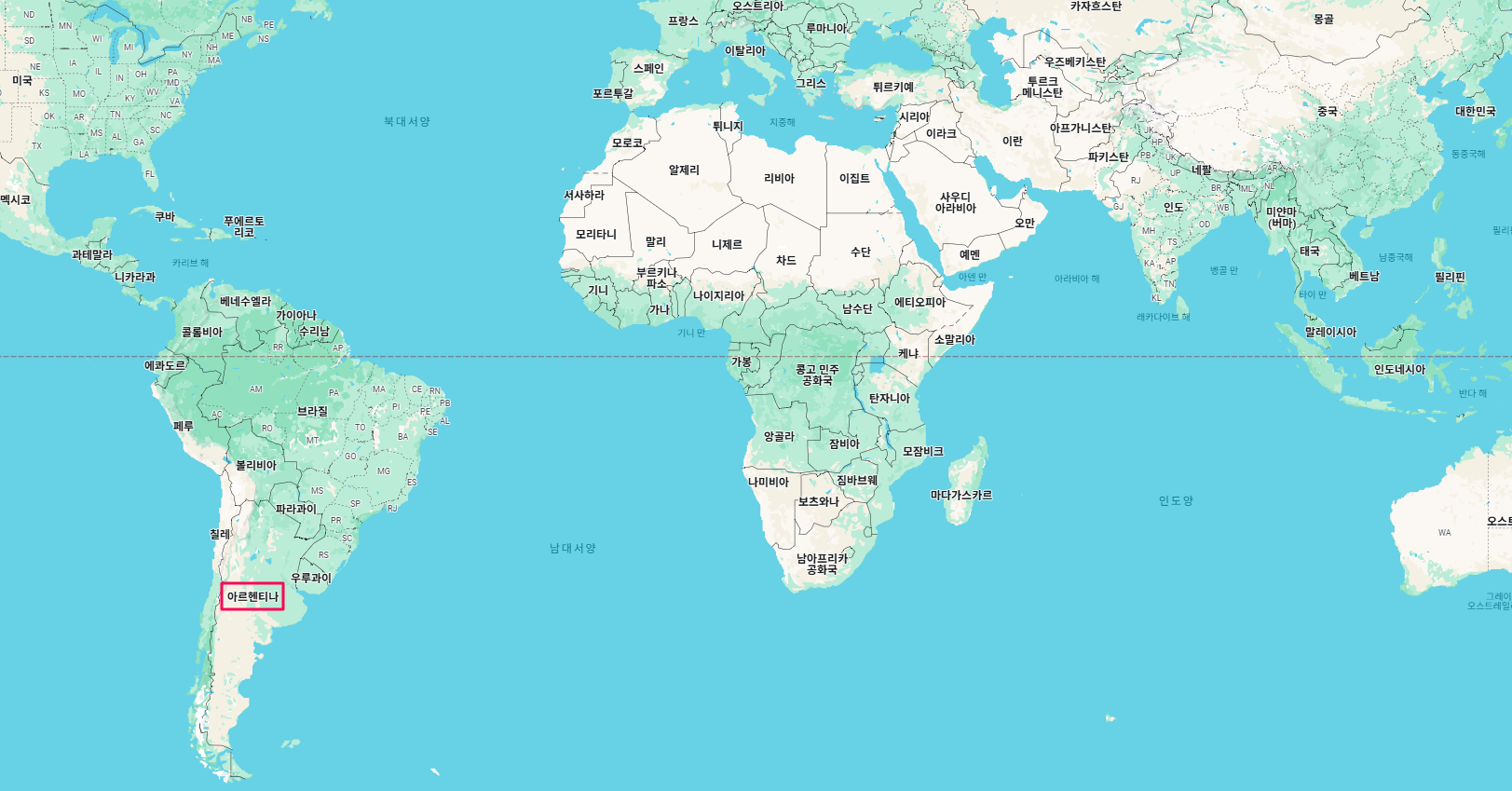 아르헨티나'Argentina'는 남아메리카 남동부에 있는 연방제 공화국으로, 수도는 부에노스아이레스'Buenos Aires'입니다.