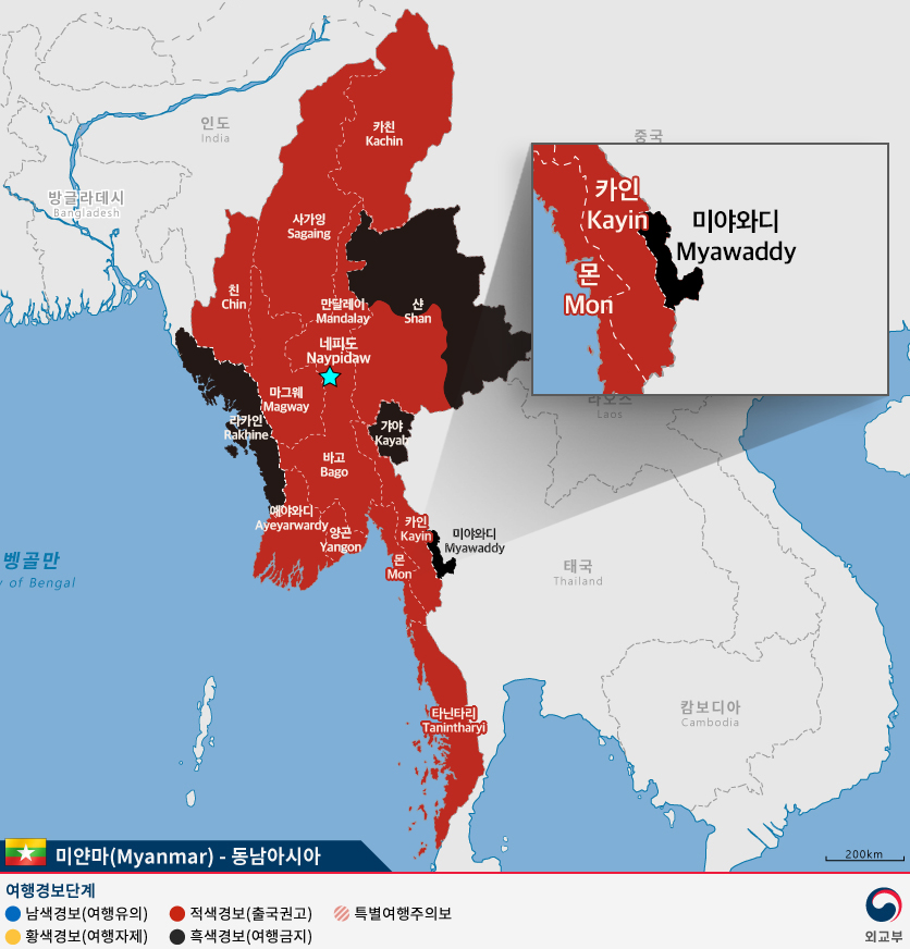 미얀마 여행경보 지도