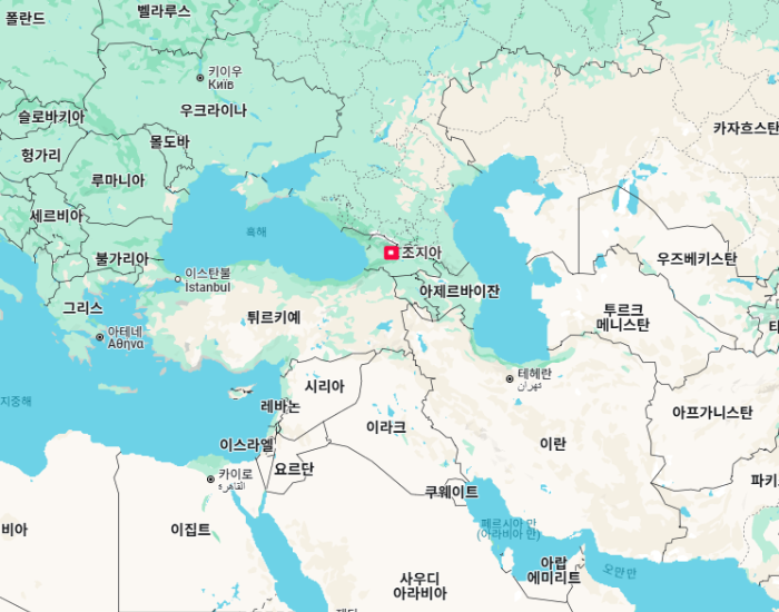 조지아'Georgia'는 서아시아와 동유럽 사이에 걸쳐있는 국가로, 면적은 6만 9700㎢(세계 123위)으로 한반도의 약 1/3 크기이며, 수도는 트빌리시'Tbilisi'입니다.