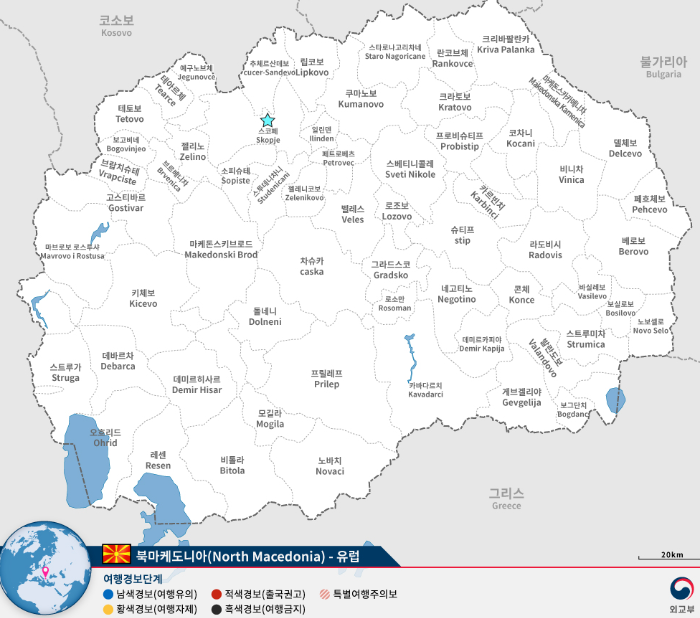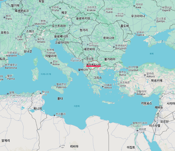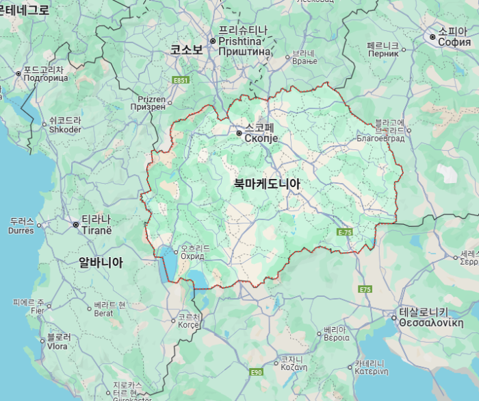 북마케도니아"North Macedonia"는 유럽 남부에 위치한 나라로, 면적 약 2만 5천㎢(세계 148위), 수도는 스코페'Skopje'입니다.