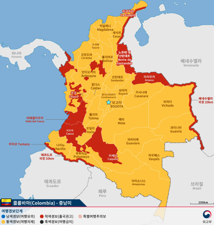 콜롬비아 여행경보지도
