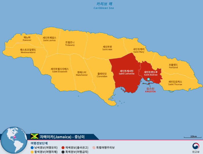 한편 지난해 대한민국과 자메이카 교역 규모는 수출액 4791만 달러(자동차 및 부품, 철강 등), 수입액 179만 달러(전기기기, 구리 등)였습니다.