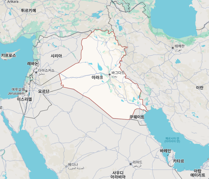 이라크'Iraq'는 아시아 서남부에 위치한 공화국으로, 면적 약 44만㎢(세계 58위)로 한반도의 약 2배, 수도는 바그다드'Baghdad'입니다.