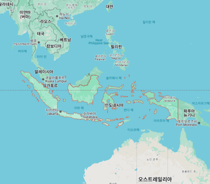 지금부터 인도네시아 지도 위치와 국기와 국장 등의 간단한 개관을 살펴보겠습니다.