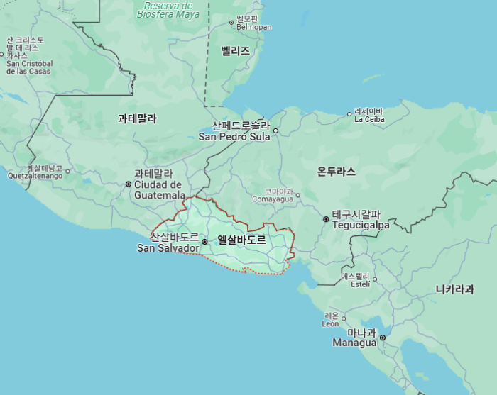 엘살바도르'El Salvador'는 중앙아메리카 중부에 위치한 공화국으로, 면적 약 2만 1천㎢(세계 152위)으로, 대한민국의 1/5 크기이며, 수도는 산살바도르'San Salvador'입니다.