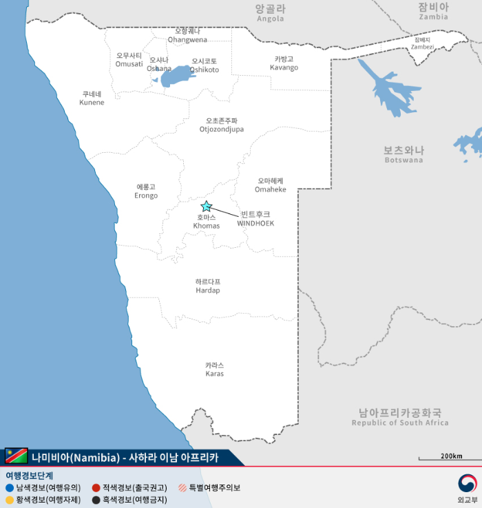 나미비아 여행경보 지도