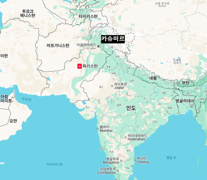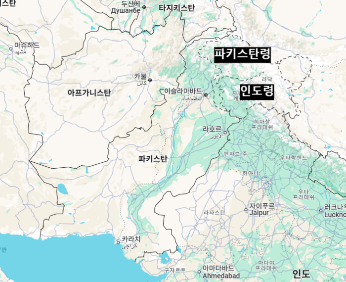 현재 카슈미르 지역은 국경선이 아닌 실효지배지역 경계선으로 나뉘어있어 분쟁이 끊임없이 일어나고 있습니다.