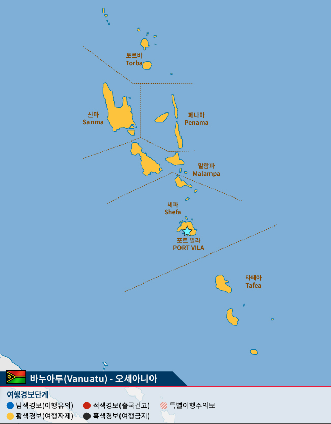 바누아투'Vanuatu'는 오스트레일리아 남태평양에 위치한 섬나라로, 면적 약 122만 ha(세계 162위), 수도는 포트빌라'Port Vila'입니다.