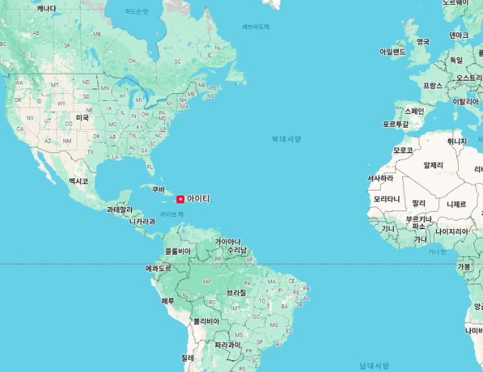 아이티'Haiti'는 카리브해 히스파니올라섬의 서부에 위치한 나라로, 면적 약 277만 ha(세계 146위)이며 수도는 포르토프랭스'Port-au Prince'입니다.