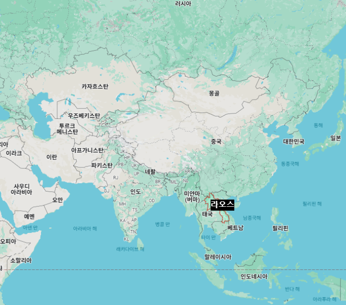 라오스'Laos'는 동남아시아 인도차이나반도에 있는 국가로, 면적 약 2,368만 ha(세계 83위)로 한반도의 크기와 비슷하며, 수도는 비엔티안'Vientiane'입니다.