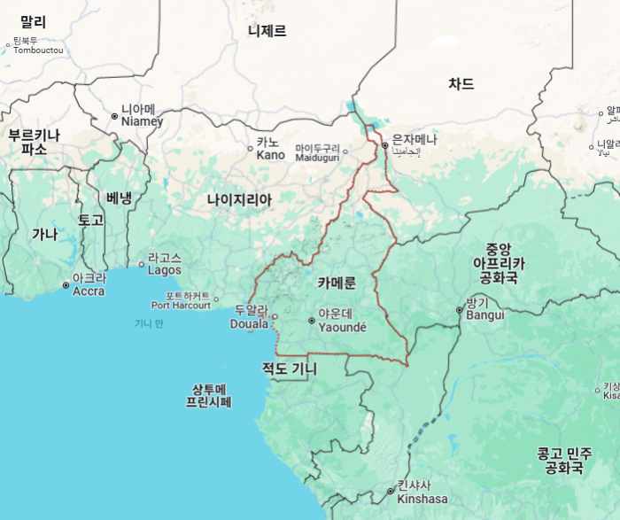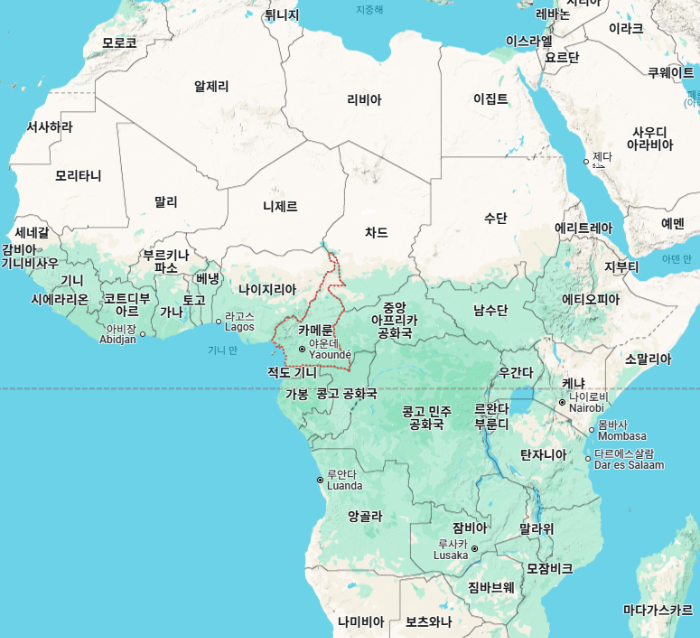 지금부터 카메룬 위치 지도와 국기와 국장 등 간단한 개관을 살펴보겠습니다.