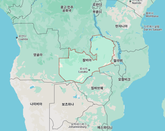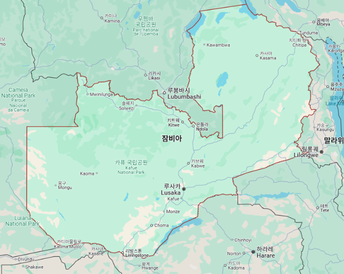 잠비아'Zambia'는 아프리카 중부 내륙국으로, 면적 약 7,526만 ha(세계 38위)로 한반도의 3.4배이며, 수도는 루사카'Lusaka'입니다.