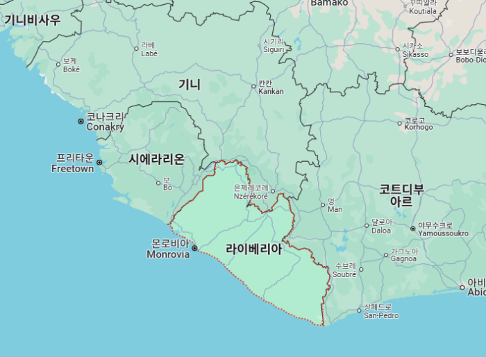 라이베리아'Liberia'는 아프리카 서부 대서양 연안에 있는 나라로, 면적 1,113만 ha(세계 104위)로 대한민국과 크기가 비슷하며, 수도는 몬로비아'Monrovia'입니다.