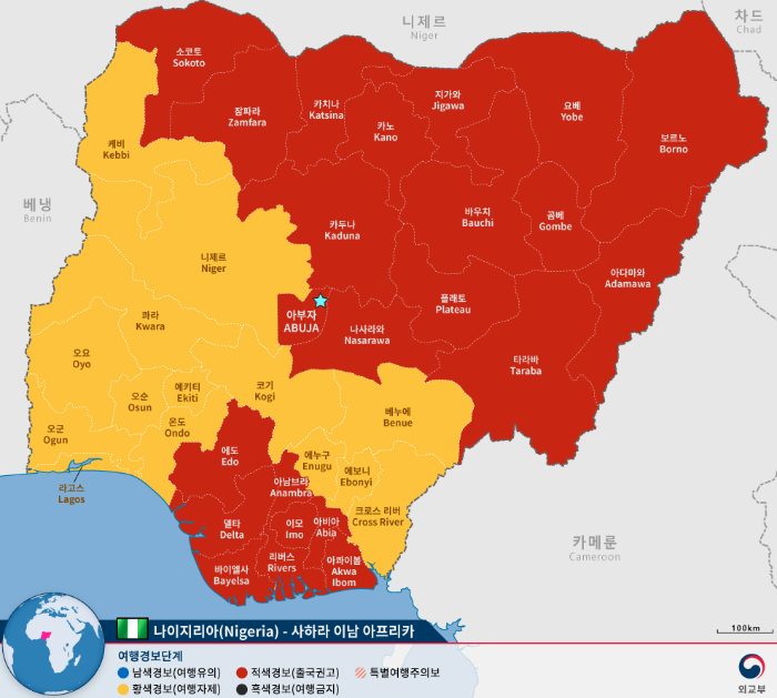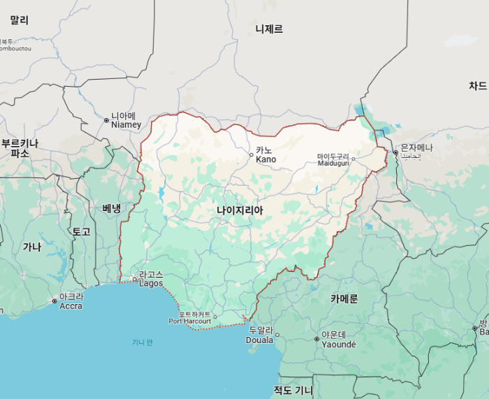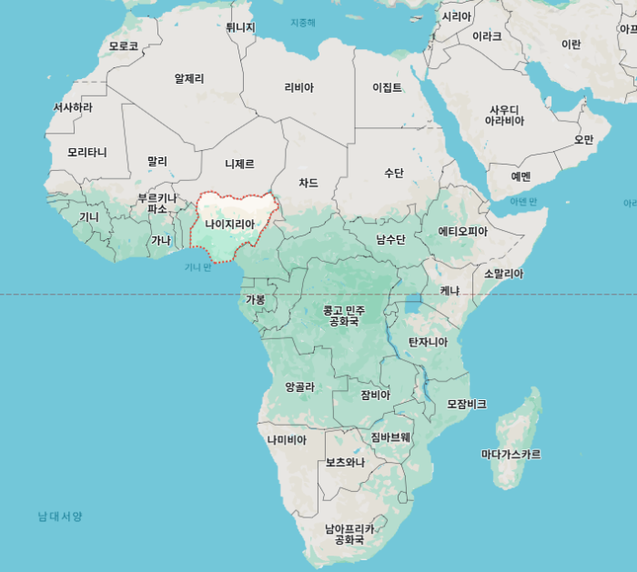나이지리아'Nigeria'는 아프리카 서부에 위치한 나라로, 면적 약 9,237만 ha(세계 31위)로 한반도의 4.18배, 수도는 아부자'Abuja'입니다.