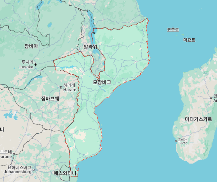 모잠비크'Mozambique'는 아프리카 남동부에 있는 나라로, 면적 약 7,993만 ha(세계 34위)로 한반도의 3.62배, 수도는 마푸토'Maputo'입니다.