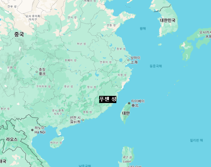 푸젠성 Fujian Province'는 중국의 성급 행정구 33개 중에 하나로 중국본토의 남동부에 위치하고 있으며, 면적은 약 12.4만㎢으로 대한민국 크기보다 조금 더 큽니다.