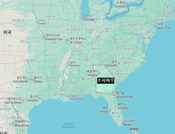 '조지아주'State of Georgia'는 미국의 50개 주의 하나로, 국토의 동남부에 위치하고 있으며 면적은 약 15만 4077㎢으로 대한민국의 1.5배의 크기이며 최대도시는 '애틀랜타'입니다.