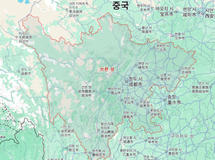 쓰촨성(四川省'사천성)'Sichuang Sheng'은 중국 중서부에 위치하고 있으며, 면적 약 48만 5000㎢으로 대한민국의 약 4.8배의 크기입니다.