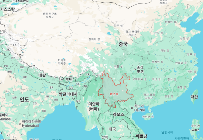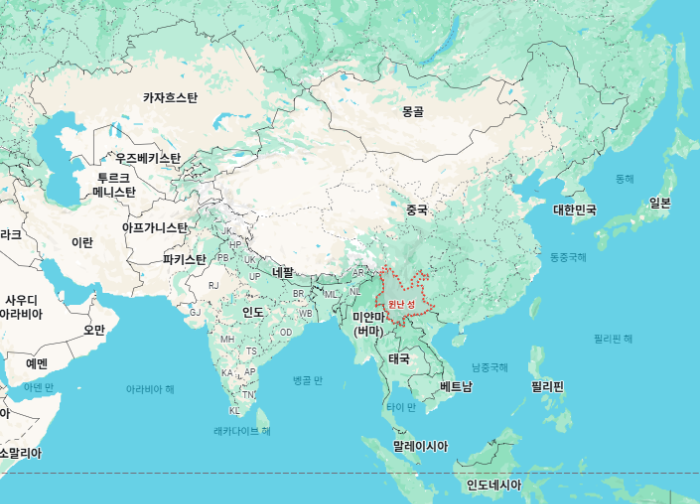 윈난성(云南省)"Yunnan Sheng'"은 중국 서남부에 위치하고 있는 성급 행정구역으로 한자음으로는 '운남성'이며, 면적은 약 39.4만㎢으로 대한민국의 약 4배의 크기입니다.