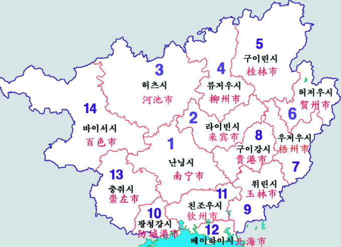 광시좡족 자치구 위치 지도