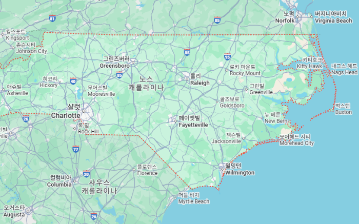 지금부터 미국 노스캐롤라이나주 지도 위치와 계절별 기후, 그리고 인기 여행지를 간단히 살펴보겠습니다.