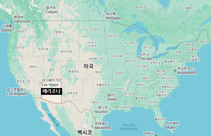 대한민국 서울을 기준으로 미국 '애리조나주'까지의 거리는 약 10,100km, 시차는 16시간 서울이 빠릅니다.